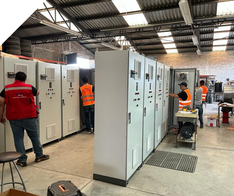 Integración de tableros eléctricos, variadores de frecuencia, sensores de nivel, presión y caudal, así como sistemas de protección y control inteligente.