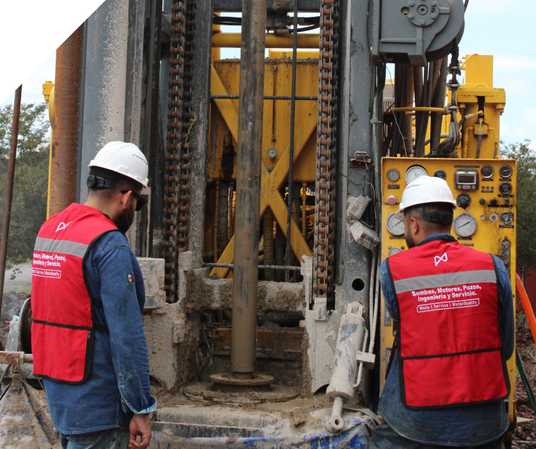 Selección del método más adecuado de perforación, ya sea sistema neumático DTH o perforación rotaria directa con lodos, considerando la dureza del terreno, las características geológicas y las condiciones hidrogeológicas del sitio.